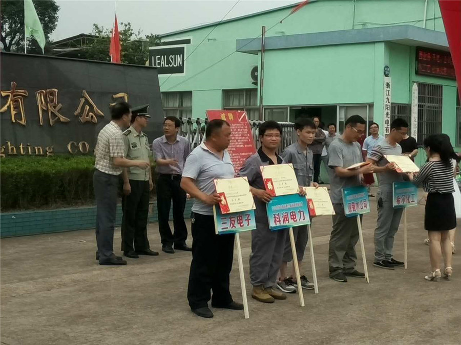 2016年6月25日上午8:00,由市總工會組織的江山經濟開發區第三屆企業消防技能大賽在江東工業園興工路九陽光電公司舉行,我公司黨支部書記樂田光等5人組成的代表隊參加了本次比賽,最終憑借過硬的安全素質和精湛的消防技能,榮獲大賽“三等獎”。