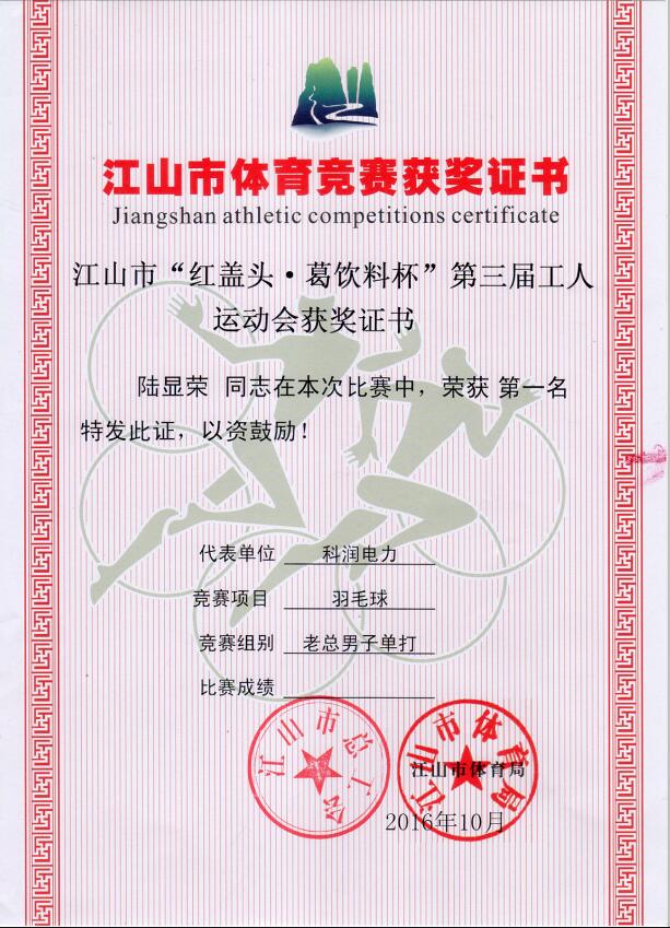 喜訊:生管中心陸總榮獲我市“紅蓋頭·葛飲料杯”第三屆工人運動會羽毛球賽老總組男子單打冠軍