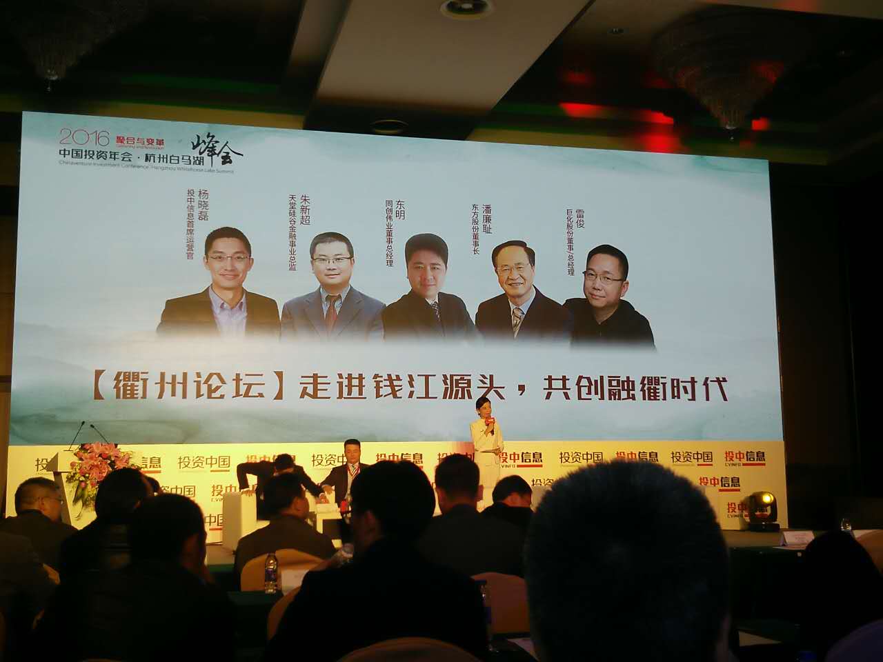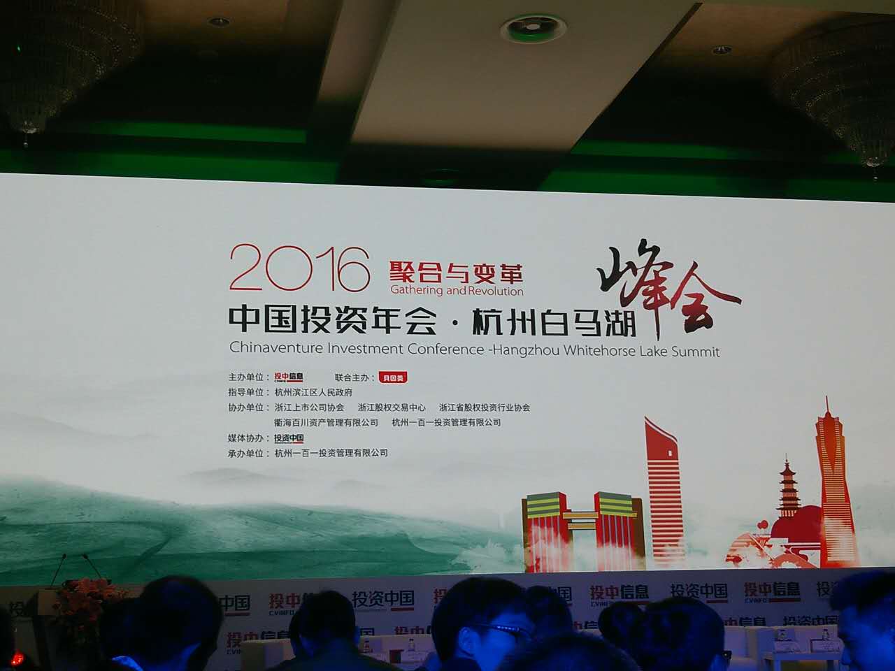 11月23日至24日,2016聚合與變革·中國投資年會·杭州白馬湖峰會在杭州召開。江山市副市長巫小雄率隊參加峰會,公司總經理章群峰參加,并與相關投資公司進行意向對接 。