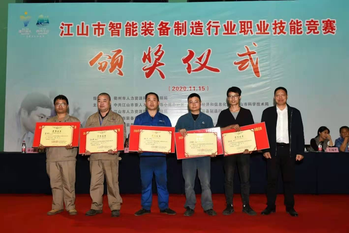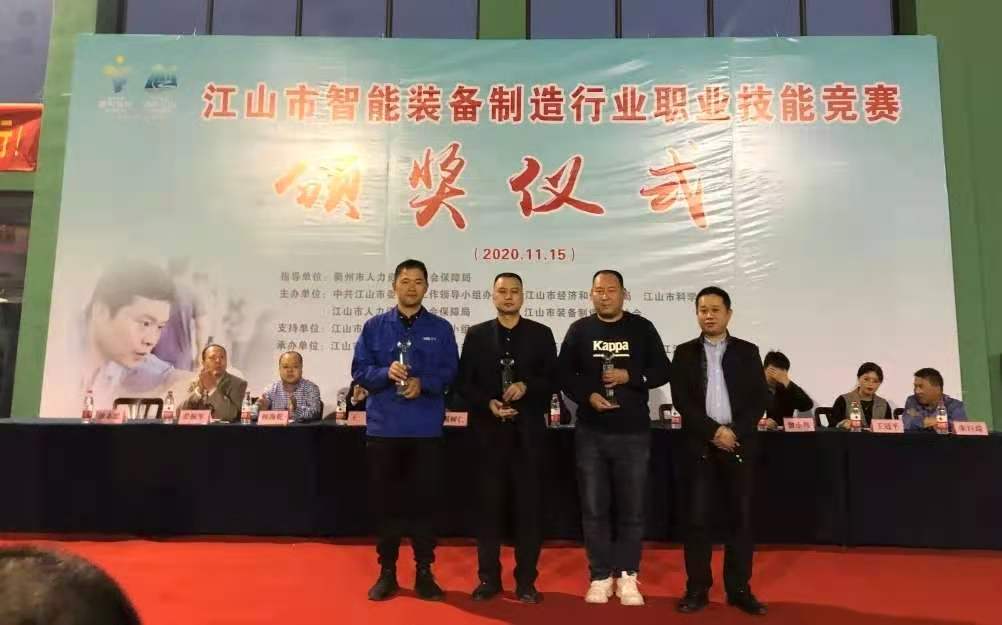 為弘揚“工匠精神”,提升行業技能水平,在衢州市人力資源和社會保障局的指導下,2020年江山市智能裝備制造行業職業技能競賽于11月15日精彩開賽。本次比賽共設5個比賽工種,來自裝備制造行業的19支代表隊176名選手參加了角逐。我司參賽人員獲得了優異的成績,“科潤智能控制股份有限公司”獲得“優秀組織獎”,員工黎祥有獲得“電工”比賽工種“第一名”,員工祝先海獲得“沖壓工”比賽工種“第一名”。