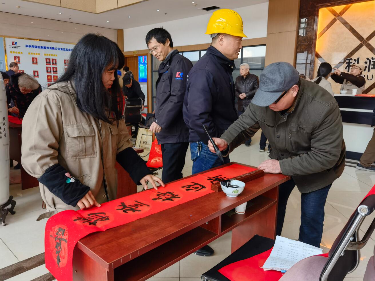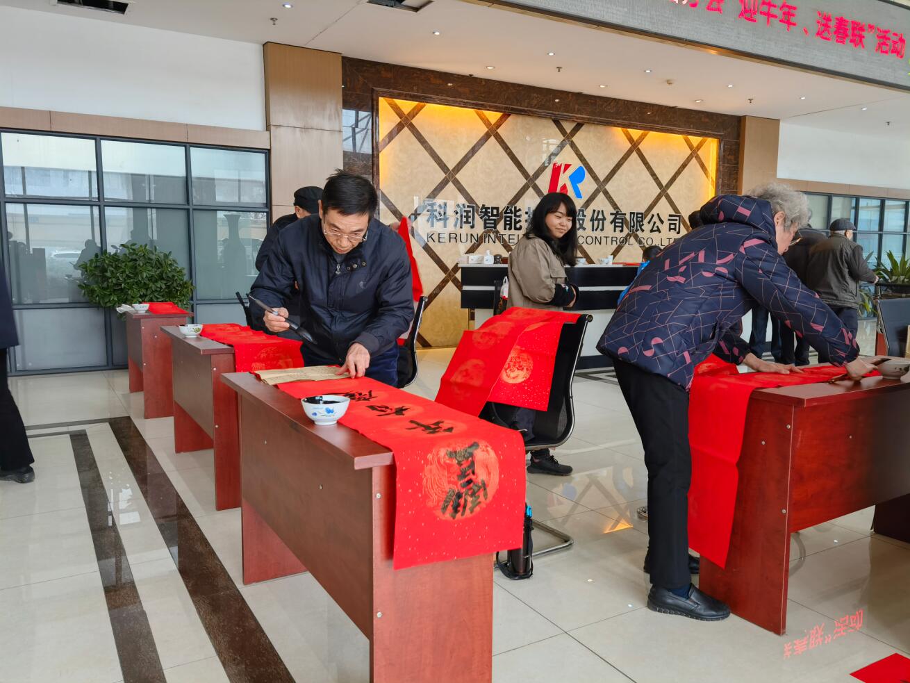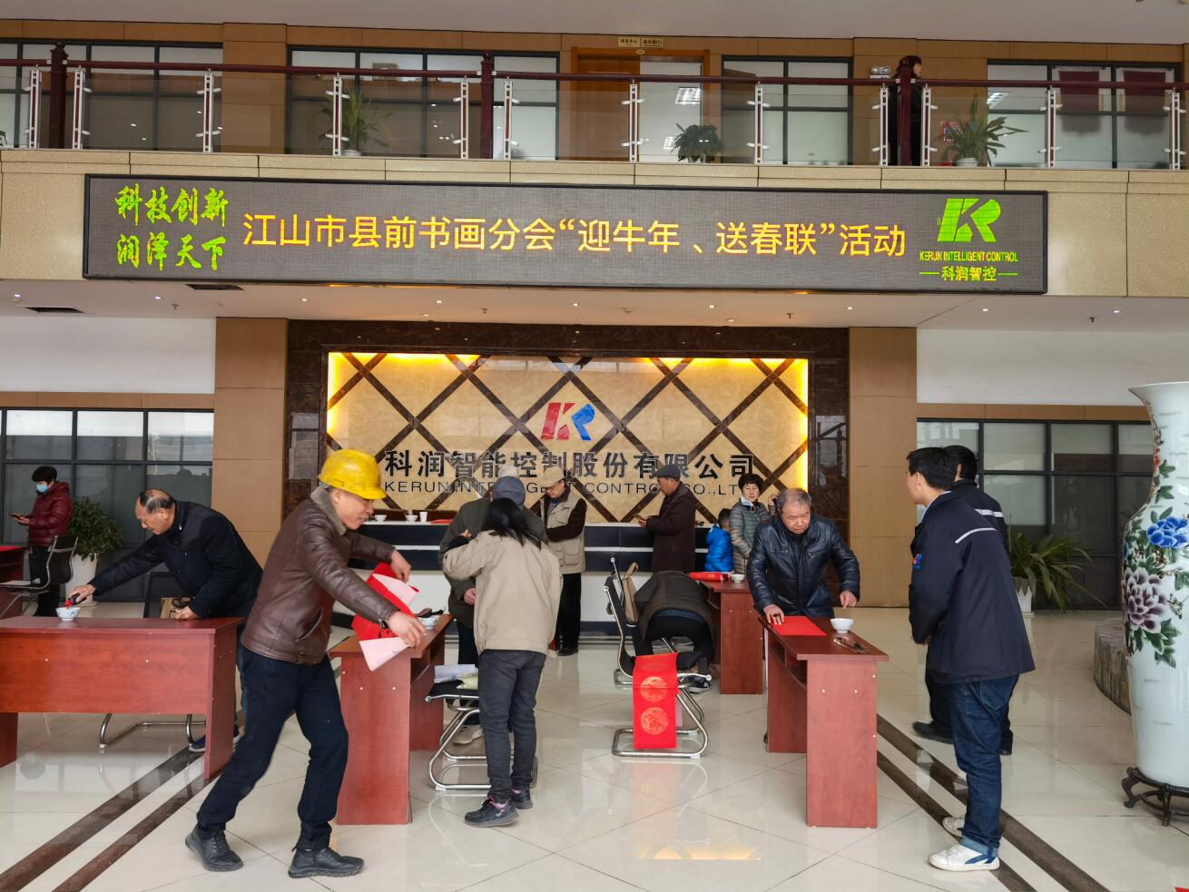 2021年2月3日,江山市縣前書畫分會走進科潤公司舉辦“迎牛年、送春聯”活動,為全體員工書寫春聯、送上新春祝福。