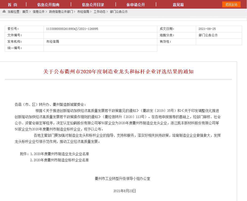 近日,市經(jīng)信局公布了2020年度衢州市龍頭和標(biāo)桿企業(yè)評(píng)選結(jié)果,全市共評(píng)選出50家龍頭企業(yè)和50家標(biāo)桿企業(yè)。科潤(rùn)智能控制股份有限公司榜上有名,被評(píng)為“2020年度衢州市龍頭企業(yè)”。